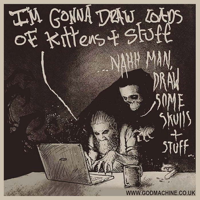 Kitten and skulls Limited Edition of 50 full colour digital on 300gsm recycled grey card 21cm x 21cm signed