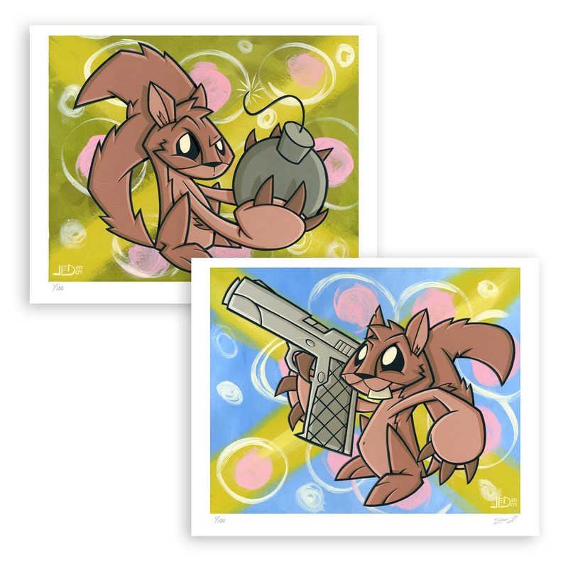 Squirrel Prints set. Each print is 8x10" Giclee print on heavystock Somerset Velvet paper Signed, numbered, and watermarked de-bossed for authenticity. Limited edition of 100
