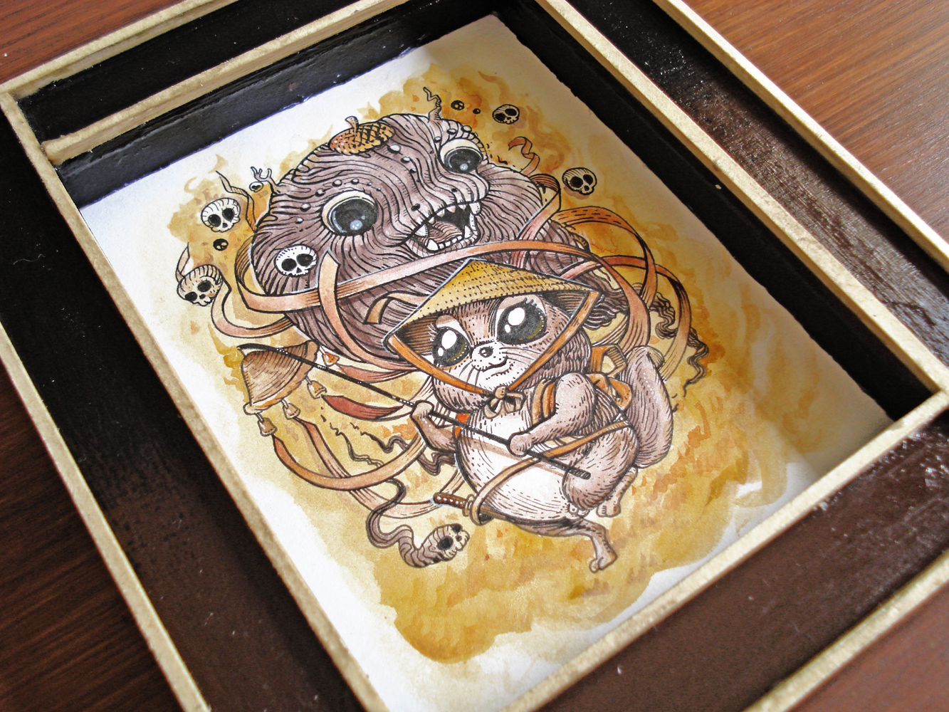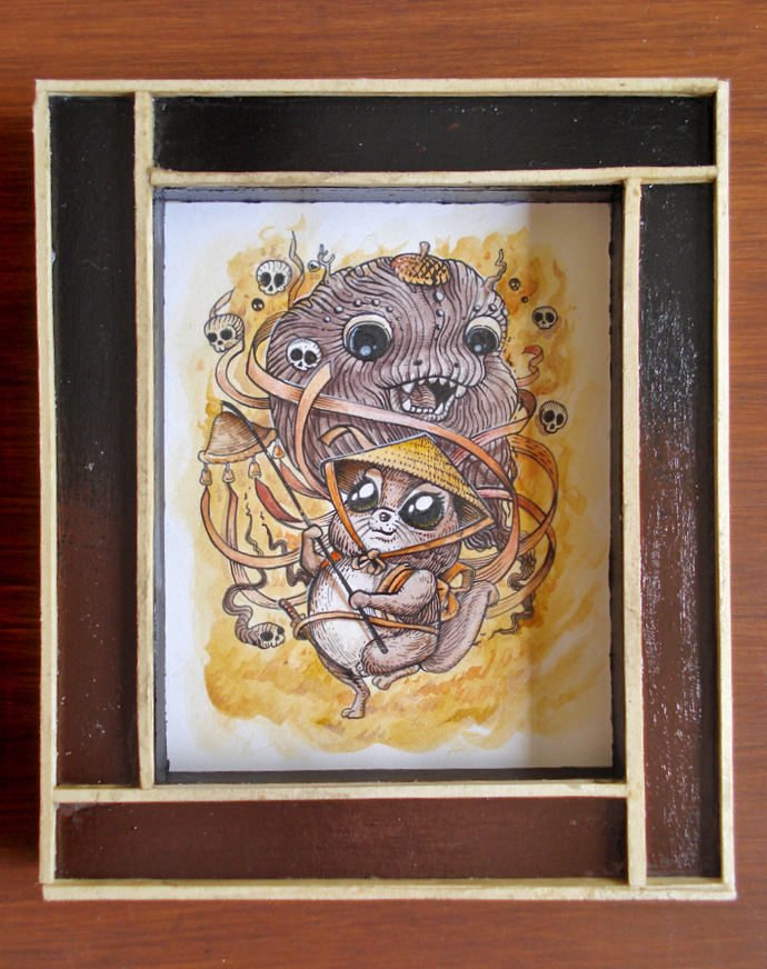 Acorn Ghost 12,5 x 10 cm ink and watercolor on paper custom frame
