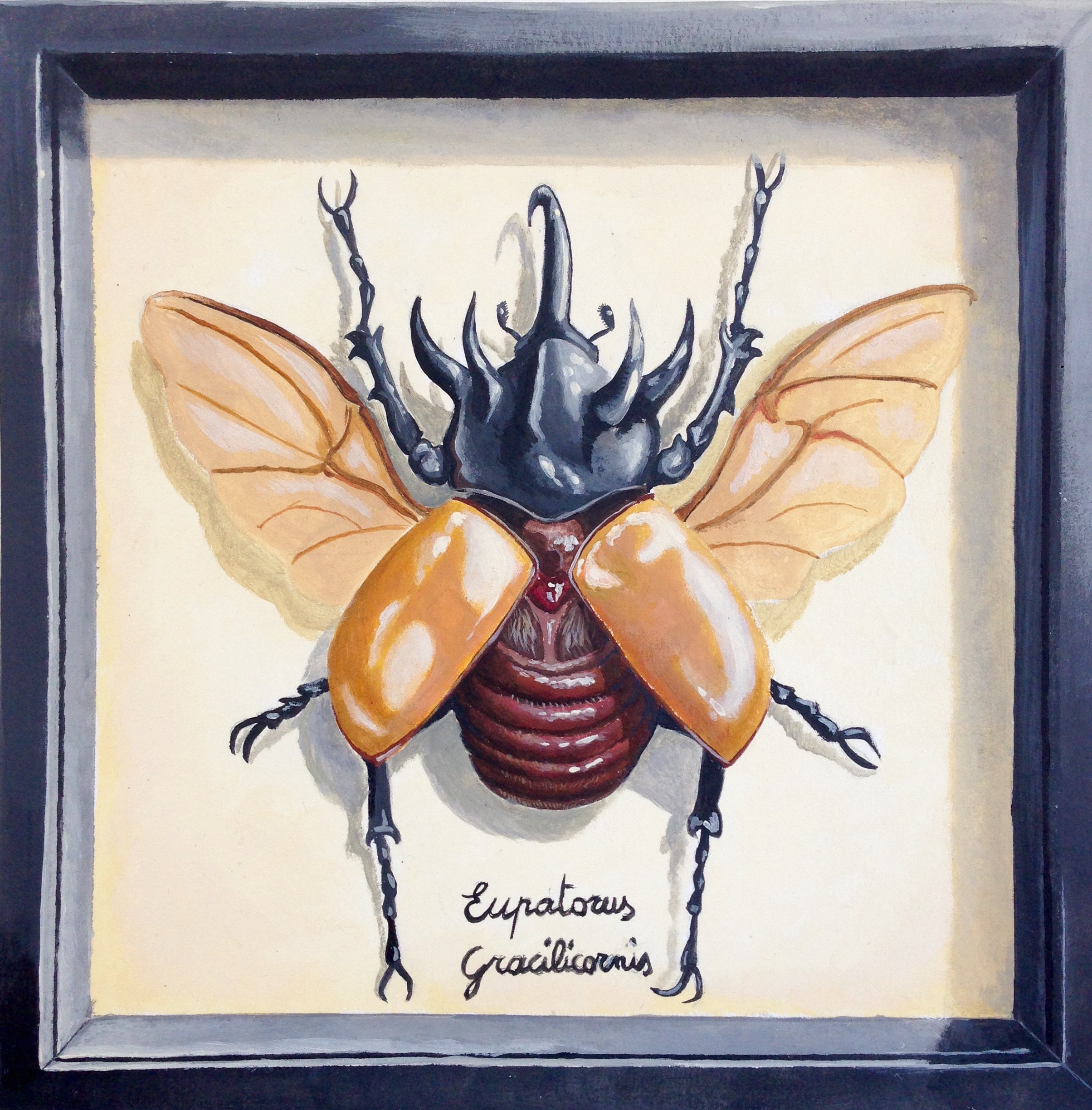 Eupatorus gracilicornis acrylic on paper Fedrigoni 300gr 24x24 cm