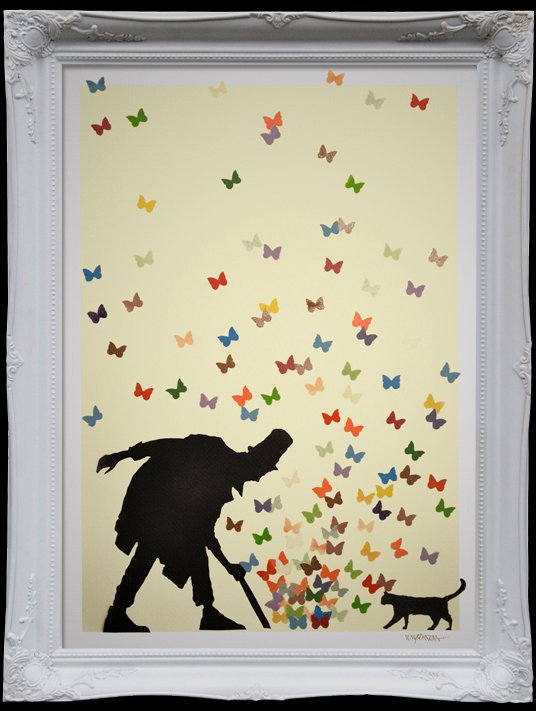 Butterfly effect Wite-Cream. Opera Unica. Spray Paint on 300g Cotton Paper. 50X70 cm.